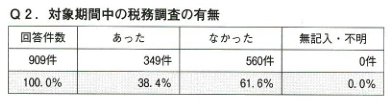 アンケートによると、対象期間中(令和6年7月〜令和7年6月)に税務調査が「あった」と回答した税理士は38.4%でした。