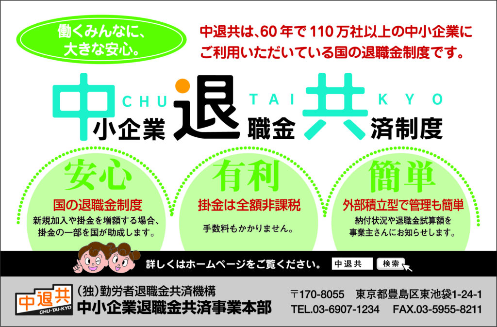 - 中小企業退職金共済(中退共)への補助が非常に手厚いのが特徴です。