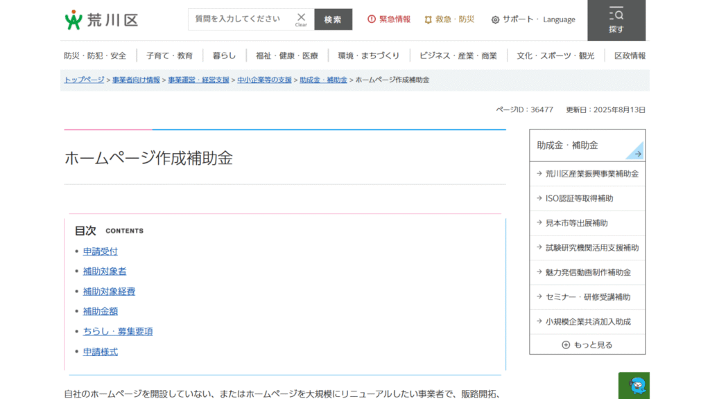 https://www.city.arakawa.tokyo.jp/a021/jigyousha/jigyouunei/hpsakusei.html